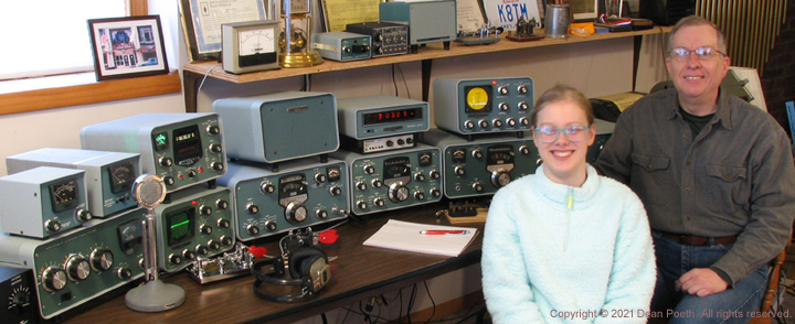 Dean Poeth (K8TM) and daughter Anna enjoying Straight Key Night 01 January 2021. Mom (Opal Poeth, KB3ATP) took the photo.